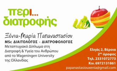 Τέλος, συμμετέχω σχεδόν καθημερινά σε ομαδικά προγράμματα γυμναστικής, όπως pilates, yoga, TRX και zumba, καθώς μου αρέσει να βρίσκομαι σε καλή φυσική και ψυχική κατάσταση. Από τον Απρίλιο του 2018 έως σήμερα: Αντιπρόεδρος ΕΔΔΕ Κεντρικής Μακεδονίας (Ένωση Διαιτολόγων-Διατροφολόγων Ελλάδος).
